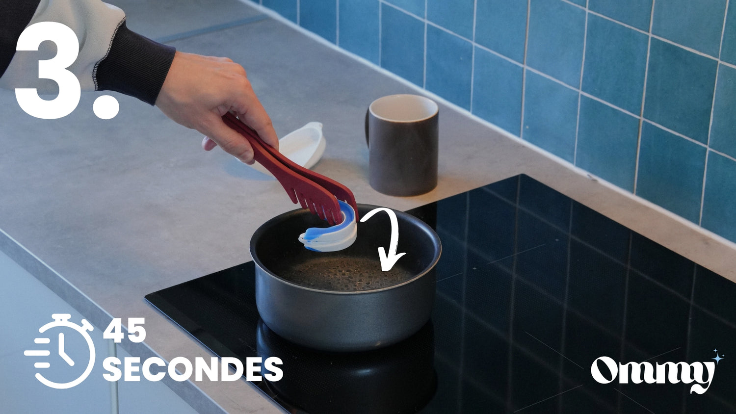 Cette étape permettra de ramollir le silicone médical de l’orthèse afin que vous puissiez y laisser votre empreinte dentaire.